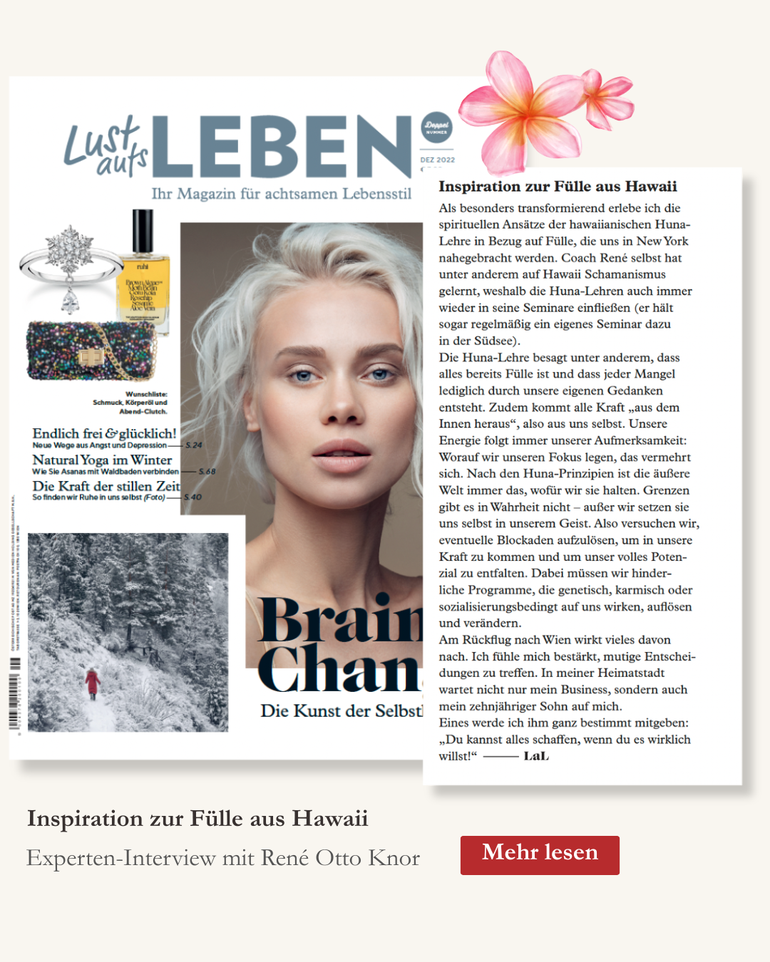 Inspiration zur Fülle aus Hawaii. Experteninterview mit René Otto Knor in Lustaufsleben. HIER den ganzen Artikel lesen.